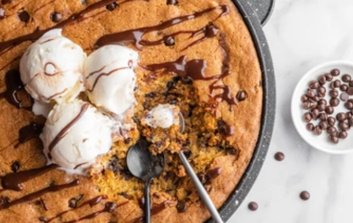 What’s more indulgent than a giant warm cookie that you eat right off the skillet? Absolutely nothing! The hot skillet caramelises the bottom of the cookie, gives a soft centre and a mildly crunchy top.