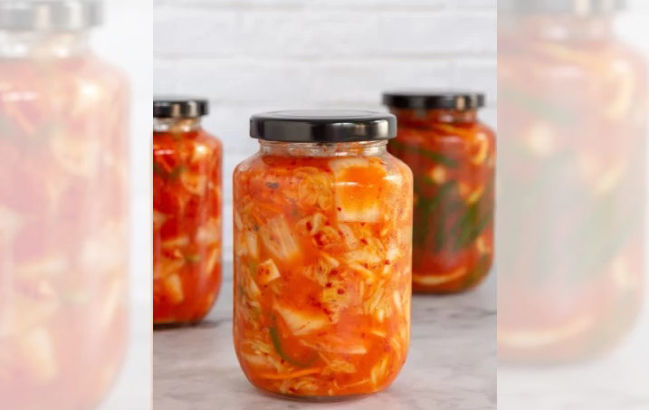 Kimchi is a traditional Korean side dish of fermented cabbage, radish and carrot.